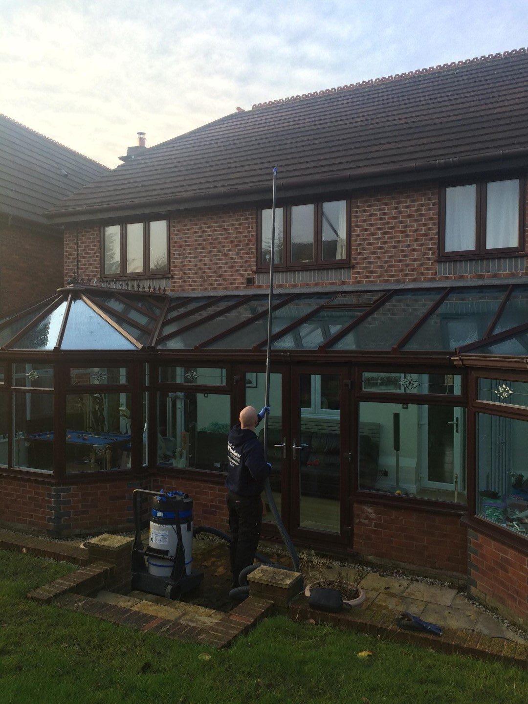 Our high reach, ladder-less cleaning systems mean that we can clean windows and conservatory roofs that were previously inaccessible without special access equipment, allowing us to clean high and awkward windows with our feet still firmly on the ground. Our GutterVac system allows us to clean many gutters in the same way too – reaching higher without the huge cost of scaffolding or cherry pickers!
